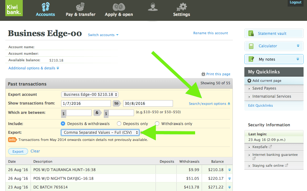 Under ‘Accounts’ look for the 'Search/export options' button.